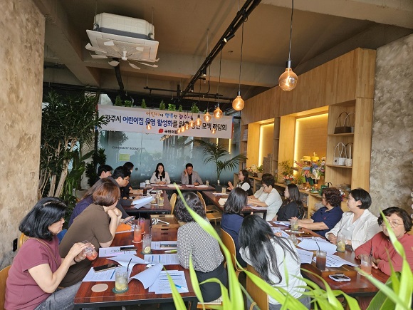 °£´ãȸ¿¡ Âü¼®ÇÑ ¾î¸°ÀÌÁý ¿øÀåµéÀº ÀúÃâ»ý°ú ¿î¿µ³À¸·Î ÀÎÇØ ±¤Áֽà °ü³» ¹Î°£¾î¸°ÀÌÁýÀÌ Æó¿ø À§±â¿¡ Á÷¸éÇϰí ÀÖ´Ù°í È£¼ÒÇϸç, “ÀÌÁ¦´Â º¸¿©ÁÖ±â½Ä ´ëÃ¥ÀÌ ¾Æ´Ï¶ó Çö½ÇÀûÀ̰í Áö¼Ó °¡´ÉÇÑ Áö¿øÀÌ ÇÊ¿äÇÏ´Ù”°í ¸ñ¼Ò¸®¸¦ ³ô¿´´Ù.