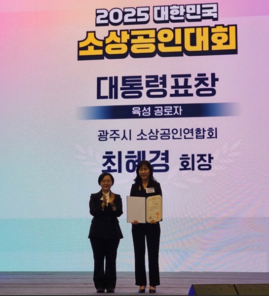 ±¤Áֽüһó°øÀο¬ÇÕȸ ÃÖÇý°æ ȸÀåÀÌ Áö¿ª ¼Ò»ó°øÀÎ À°¼º°ú »ó»ý Áö¿ø¿¡ ±â¿©ÇÑ °ø·Î¸¦ ÀÎÁ¤¹Þ¾Æ ‘2025 ´ëÇѹα¹ ¼Ò»ó°øÀδëȸ’¿¡¼ ´ëÅë·É ǥâÀ» ¼ö»óÇß´Ù.