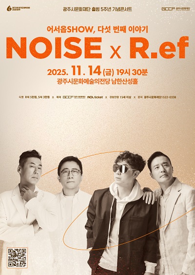 (Àç)±¤Áֽù®ÈÀç´Ü(´ëÇ¥ÀÌ»ç ¿À¼¼¿µ)Àº ±¤Áֽù®ÈÀç´Ü Ãâ¹ü 5ÁÖ³âÀ» ¸Â¾Æ ¿À´Â 11¿ù 14ÀÏ(±Ý) 19½Ã 30ºÐ ±¤Áֽù®È¿¹¼úÀÇÀü´ç ³²Çѻ꼺Ȧ¿¡¼ ·¹Àüµå ¾ÆÆ¼½ºÆ® ³ëÀÌÁî(Noise)¿Í R.ef°¡ ÇÔ²²Çϴ Ưº°ÇÑ ¹«´ë <¾î¼¿ÉSHOW>¸¦ ¼±º¸ÀδÙ.