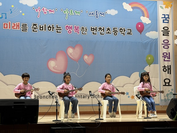 ¹øÃµÃʵîÇб³(±³Àå ¿ÀÀç¼±)´Â 11¿ù 7ÀÏ(±Ý), ÇÑ ÇØ µ¿¾ÈÀÇ ±³À°°úÁ¤ ¼º°ú¸¦ ¹«´ë·Î ¼±º¸ÀÌ´Â ‘¹øÃµ¿¹¼úÁ¦’¸¦ °³ÃÖÇß´Ù. À̹ø Çà»ç´Â ÇлýµéÀÌ ¼ö¾÷°ú ÇÁ·ÎÁ§Æ® Ȱµ¿ ¼Ó¿¡¼ ÀÍÈù ¿¹¼úÀû ¹è¿òÀ» ³ª´©´Â ÀÚ¸®·Î, Çкθð¿Í Áö¿ªÁÖ¹ÎÀÌ ÇÔ²² Âü¿©Çϸç Çб³¿Í ¸¶À»ÀÌ ÇÔ²² ¼ºÀåÇÏ´Â ±³À°°øµ¿Ã¼ÀÇ ¸ð½ÀÀ» º¸¿©ÁÖ¾ú´Ù.