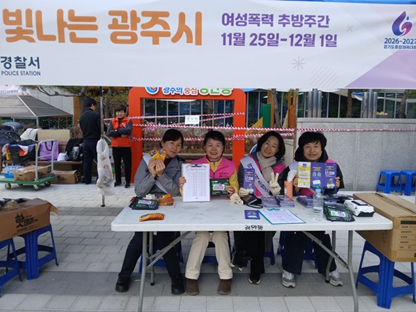 ±¤Áֽô Áö³ 21ÀÏ ‘2025³â ¿©¼º Æø·Â Ãß¹æ ÁÖ°£(11¿ù 25ÀÏ~12¿ù 1ÀÏ)’À» ¸Â¾Æ ±¤ÁÖ°æÂû¼, °¡Á¤·¼ºÆø·Â»ó´ã¼Ò, ºÒ¹ý ÃÔ¿µ ½Ã¹Î°¨½Ã´Ü°ú ÇÔ²² ¿©¼º Æø·Â ¿¹¹æÀ» À§ÇÑ ¹Î·°ü·°æ ÇÕµ¿ Ä·ÆäÀÎÀ» °æ¾Èµ¿ ÇàÁ¤º¹Áö¼¾ÅÍ ¼Ò±¤Àå¿¡¼ ½Ç½ÃÇß´Ù.