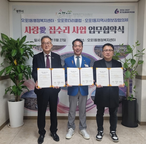 ±¤Áֽà ¿ÀÆ÷1µ¿ ÇàÁ¤º¹Áö¼¾ÅÍ´Â 27ÀÏ ±¹Á¦·ÎŸ¸® 3600Áö±¸ ¿ÀÆ÷·ÎŸ¸®Å¬·´, ¿ÀÆ÷1µ¿ Áö¿ª»çȸº¸ÀåÇùÀÇü¿Í ‘»ç¶ûäñ Áý¼ö¸® »ç¾÷’ ÃßÁøÀ» À§ÇÑ ¾÷¹«Çù¾àÀ» ü°áÇß´Ù.