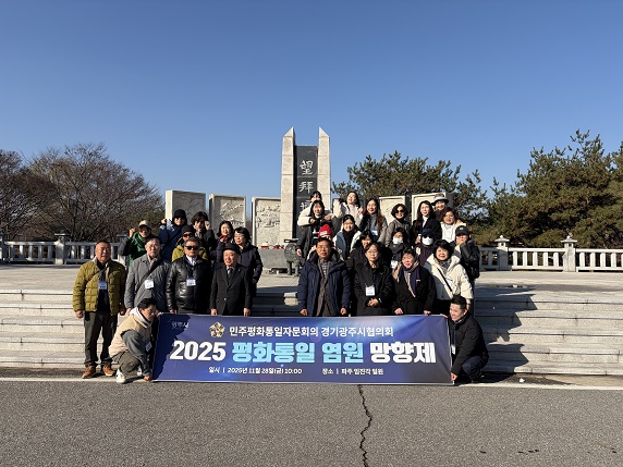 ¹ÎÁÖÆòÈÅëÀÏÀÚ¹®È¸ÀÇ ±¤ÁÖ½ÃÇùÀÇȸ(ȸÀå ±è»óÇÐ)´Â 2025³â 11¿ù 28ÀÏ(±Ý) ¿ÀÀü 10½Ã, ÆÄÁÖ ÀÓÁø°¢ ¸Á¹è´Ü¿¡¼ ‘ÆòÈÅëÀÏ ¿°¿ø ¸ÁÇâÁ¦’¸¦ °³ÃÖÇß´Ù. À̹ø Çà»ç´Â ÀÌ»êÀÇ ¾ÆÇÄÀ» ±â¾ïÇϰí Çѹݵµ ÆòÈ¿Í ÅëÀÏÀÇ ¿°¿øÀ» ´Ù½Ã ÇÑ ¹ø ´ÙÁö±â À§ÇØ ¸¶·ÃµÇ¾ú´Ù.