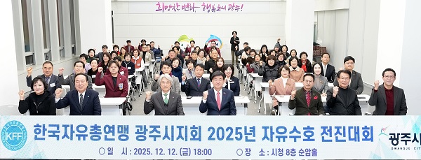 Çѱ¹ÀÚÀ¯ÃÑ¿¬¸Í ±¤ÁÖ½ÃÁöȸ´Â Áö³ 12ÀÏ ½Ãû ¼ø¾ÏȦ¿¡¼ ‘2025 ÀÚÀ¯ ¼öÈ£ ÀüÁø ´ëȸ’¸¦ °³ÃÖÇϸç ÇÑ ÇØ¸¦ ¸¶¹«¸®ÇÏ´Â ¶æ±íÀº ½Ã°£À» °¡Á³´Ù.