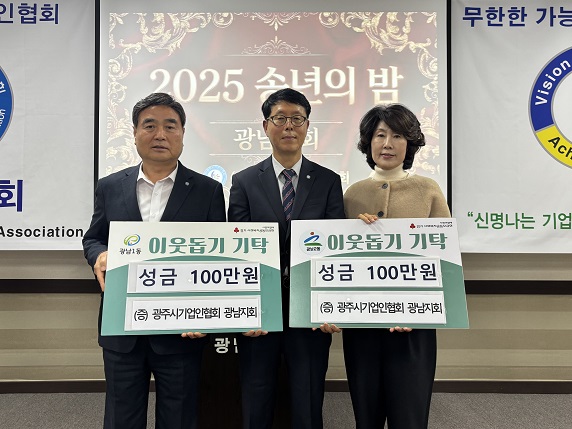 ±¤Áֽà ±â¾÷ÀÎÇùȸ ±¤³²Áöȸ ±è¿µ¼± ȸÀåÀº Áö³ 15ÀÏ ¿¸° ‘2025 ¼Û³âÀÇ ¹ã’ Çà»ç¿¡¼ ±¤³²1µ¿°ú ±¤³²2µ¿¿¡ °¢°¢ 100¸¸ ¿ø¾¿, ÃÑ 200¸¸ ¿øÀÇ ÀÌ¿ôµ½±â ¼º±ÝÀ» ±âŹÇß´Ù.