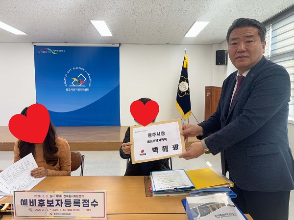 ¹ÚÇØ±¤ ±¹¹ÎÀÇÈû °æ±âµµ´ç ºÎÀ§¿øÀåÀÌ Á¦9ȸ Àü±¹µ¿½ÃÁö¹æ¼±°Å ±¤ÁÖ½ÃÀå ¿¹ºñÈĺ¸ µî·ÏÀ» ¸¶Ä¡°í º»°ÝÀûÀÎ ¼±°Å Çຸ¿¡ ³ª¼¹´Ù.