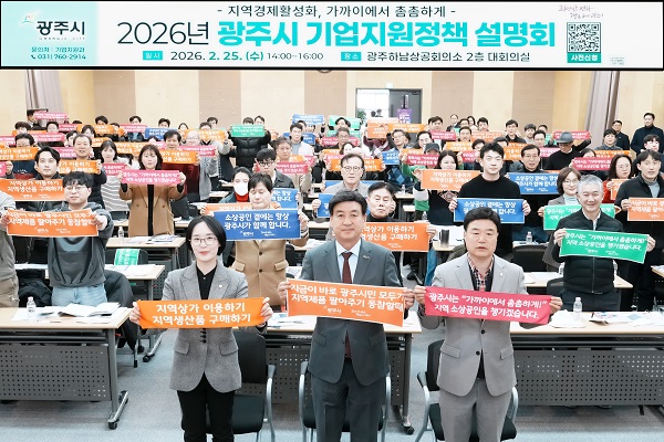 ±¤Áֽô Áö³ 25ÀÏ ±¤ÁÖÇϳ²»ó°øÈ¸ÀǼҿ¡¼ ±â¾÷ °ü°èÀÚ 100¿© ¸íÀÌ Âü¼®ÇÑ °¡¿îµ¥ ‘2026³â ±¤Áֽà ±â¾÷ Áö¿ø Á¤Ã¥ ¼³¸íȸ’¸¦ °³ÃÖÇß´Ù.