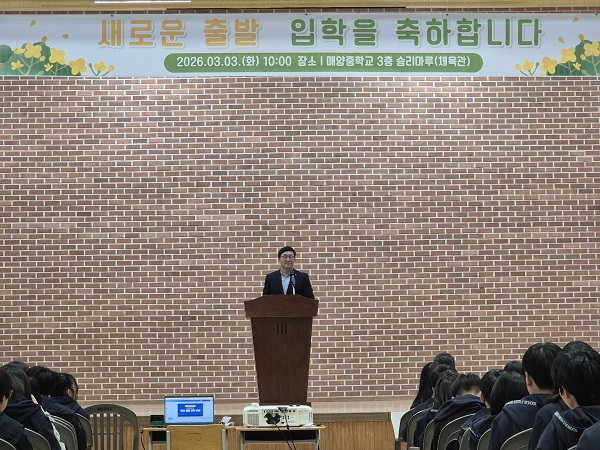 °æ±âµµ ±¤Áֽÿ¡ À§Ä¡ÇÑ ¸Å¾çÁßÇб³(±³Àå À°½É¶û)´Â 3¿ù 3ÀÏ ¿ÀÀü º»±³ üÀ°°ü¿¡¼ 2026Çг⵵ ½ÅÀÔ»ý ÀÔÇнÄÀ» ¿°í »õ·Î¿î ÇгâÀÇ Ãâ¹ßÀ» ¾Ë·È´Ù.