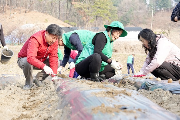 À̳¯ Çà»ç¿¡´Â »õ¸¶À» ³²³à ȸ¿ø 15¸íÀÌ Âü¿©ÇØ 660§³ ±Ô¸ðÀÇ ÅԹ翡¼ À̸¥ ¾ÆÄ§ºÎÅÍ °¨ÀÚ ÆÄÁ¾ ÀÛ¾÷À» ÁøÇàÇß´Ù. Âü¿©ÀÚµéÀº ¹ç °í¸£±âºÎÅÍ ÆÄÁ¾±îÁö Àü °úÁ¤À» ÇÔ²²Çϸç Á÷Á¢ ³óÀÛ¾÷¿¡ ³ª¼¹´Ù.