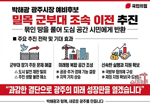 ¹ÚÇØ±¤ °æ±â ±¤ÁÖ½ÃÀå ¿¹ºñÈ帴 ±¤Áֽà ¹Ð¸ñ ÀÏ´ë¿¡ À§Ä¡ÇÑ ±ººÎ´ëÀÇ Á¶¼ÓÇÑ ÀÌÀüÀ» ÃßÁøÇØ µµ½É °ø°£À» ½Ã¹Î¿¡°Ô µ¹·ÁÁÖ°Ú´Ù°í ¹àÇû´Ù.