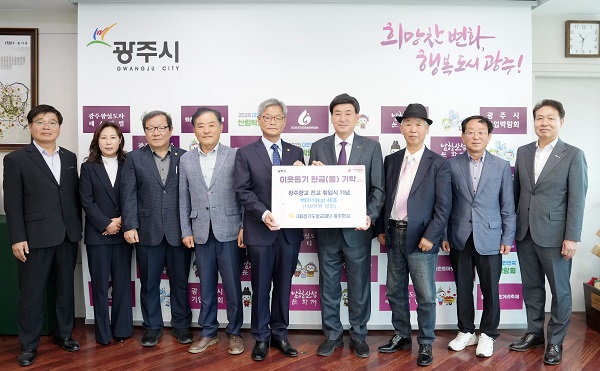 (Àç)°æ±âµµ Çâ±³Àç´Ü ±¤ÁÖÇâ±³´Â 13ÀÏ Á¦34´ë ½Éµµ½Ä ½ÅÀÓ Àü±³ ÃëÀÓÀ» ±â³äÇØ ±âŹµÈ ¹é¹Ì 40Æ÷(10§¸‧140¸¸ ¿ø »ó´ç)¸¦ ±¤Áֽÿ¡ Àü´ÞÇß´Ù.