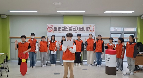ÀÌ¾î °¢ Çб޿¡¼´Â Èí¿¬ ¿¹¹æ µ¿¿µ»óÀ» ½ÃûÇÑ ÈÄ Çг⺰ ¼öÁØ¿¡ ¸Â´Â üÇèȰµ¿ÀÌ ÁøÇàµÆ´Ù. 1~2ÇгâÀº ½ºÆ¼Ä¿¸¦ Ȱ¿ëÇÑ ‘³ë´ã ÆÈÂî ¸¸µé±â’, 3~4ÇгâÀº ‘ÀÔü ±Ý¿¬ ¼±¾ð¹® ¸¸µé±â’, 5~6ÇгâÀº ‘Èí¿¬ ¿¹¹æ °¡¹æ°ÉÀÌ ¸¸µé±â’ Ȱµ¿¿¡ Âü¿©Çϸç âÀÇÀûÀ¸·Î ±Ý¿¬ ÀÇÁö¸¦ Ç¥ÇöÇÏ´Â ½Ã°£À» °¡Á³´Ù.