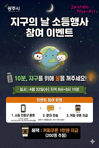 ±¤Áֽô Á¦56ÁÖ³â Áö±¸ÀÇ ³¯(4¿ù 22ÀÏ)À» ±â³äÇØ ´çÀÏ 10ºÐ°£ ÁøÇàÇÏ´Â ¼Òµî Çà»ç¿Í ¿¬°èÇÑ ½Ã¹ÎÂü¿© ¿Â¶óÀÎ Çà»ç¸¦ ÃßÁøÇÑ´Ù°í 14ÀÏ ¹àÇû´Ù.