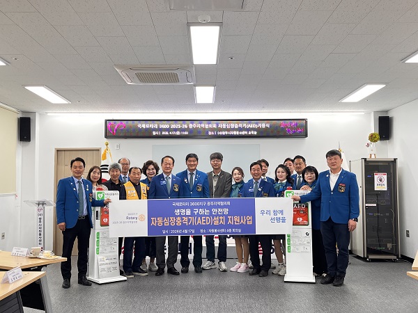 ±¹Á¦·ÎŸ¸® 3600Áö±¸ 2025-26 ±¤ÁÖÁö¿ªÇùÀÇȸ´Â Áö³ 17ÀÏ ±¤ÁÖ½ÃÀÚ¿øºÀ»ç¼¾ÅÍ 4Ãþ ±³À°Àå¿¡¼ ÀÚµ¿½ÉÀåÃæ°Ý±â ±âÁõ½ÄÀ» °³ÃÖÇϰí 500¸¸ ¿ø »ó´çÀÇ Àåºñ 2´ë¸¦ Àü´ÞÇß´Ù.